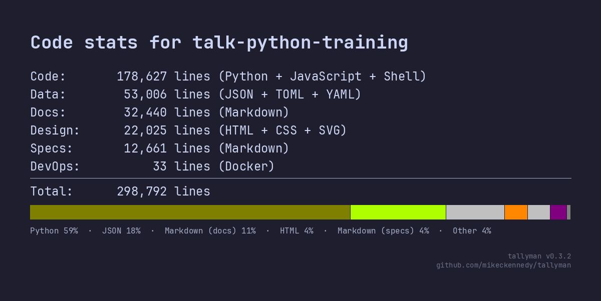 178,000 lines of code! Rewriting this from the older framework, Pyramid, to async Flask (aka Quart), was a lot of work, but I pulled it off last week.
