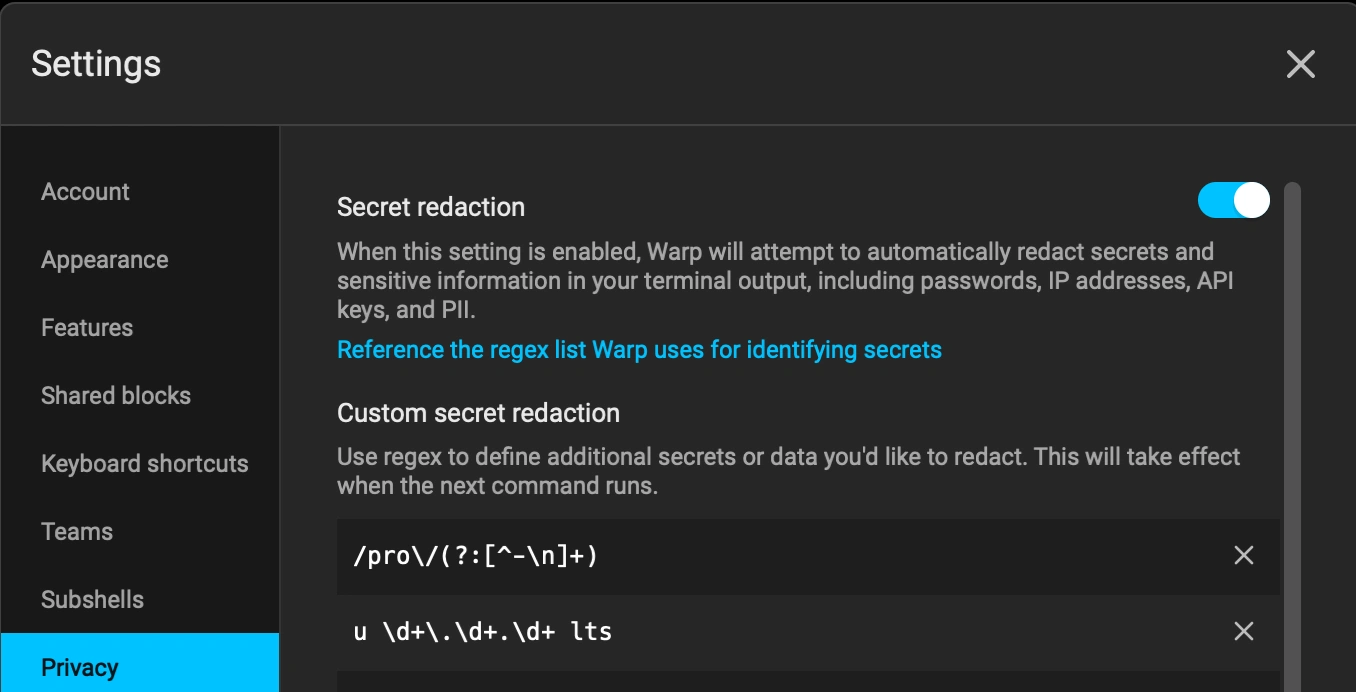 I even added a few custom regexes to hide a couple of API keys that were appearing in my logs.