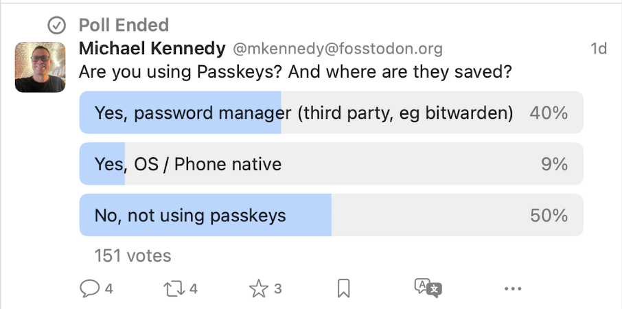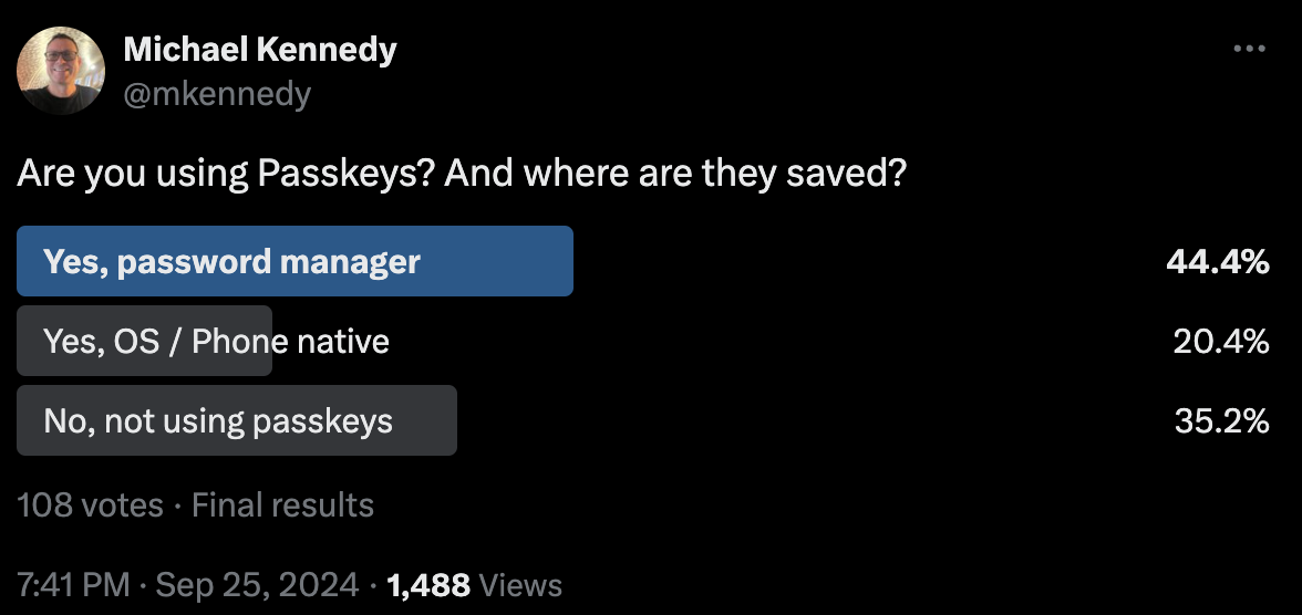 So give it a try. And if you’re not using a password manager, stop right now and go get one (I recommend 1Password and BitWarden). Then add some passkeys to your accounts that support them and save them in your password manager.