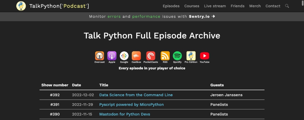 That list of podcast players, style, and basic analytics (click counting) is all handled with just this HTML fragement: