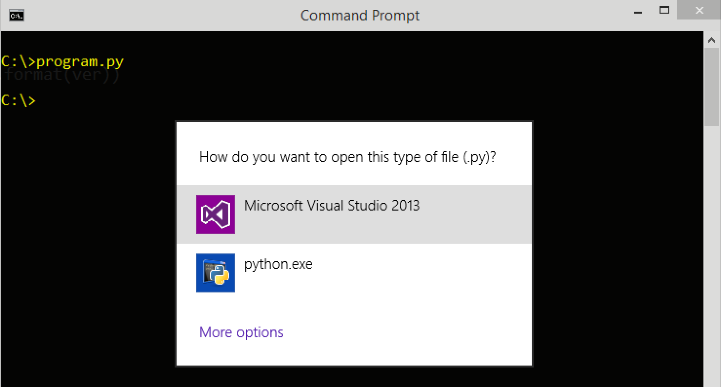 Another possibility is you’ll see a dialog to choose how to run * .py files.