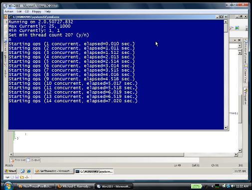Download the video [defunct link: http://michael-kennedy.s3.amazonaws.com/blog/more-downloads/KennedyFollowupNet35ThreadPool.wmv] (approx 18 MB)