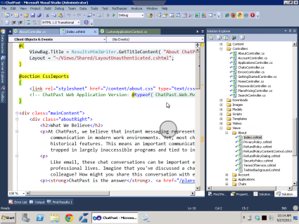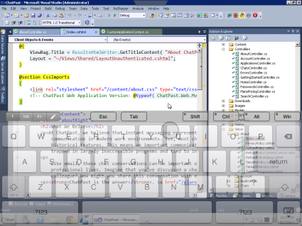 I’m sure when you think of accessing your EC2 dev machines, you’re thinking of doing that form Windows or maybe a Mac (using microsoft.com/mac/remote-desktop-client). But the iPad (and even the iPhone) has apps to allow you to use Remote Desktop to EC2. For example, here’s editing the code for chatpast.com [defunct link: http://chatpast.com] in Visual Studio via my iPad: