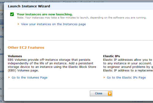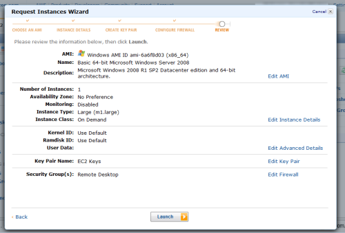 Here’s what you can expect for the review screen of the Request Instances Wizard. Press launch and you’re almost there.