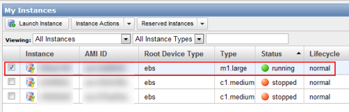 After a few minutes your instance with the yellow icon will turn green and be in the running state. Note that at first this really means booting up so you can’t get to it right away. Give it another minute or two…