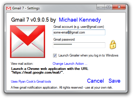 I’ve looked and looked for a replacement and they are either no longer online, are crappy applications, and so on. Finally I decided to take matters into my own hands. Introducing a clean, simple, unobtrusive, and free Gmail notification application that works on Windows 7 – Gmail 7 :