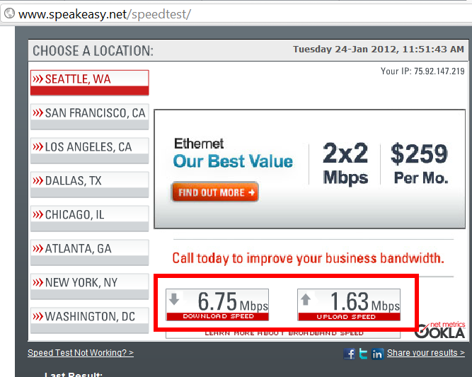 Here’s a speed test from a random day on clear 4G. You can see it’s pretty speedy, but I have seen it above 10 Mbps.
