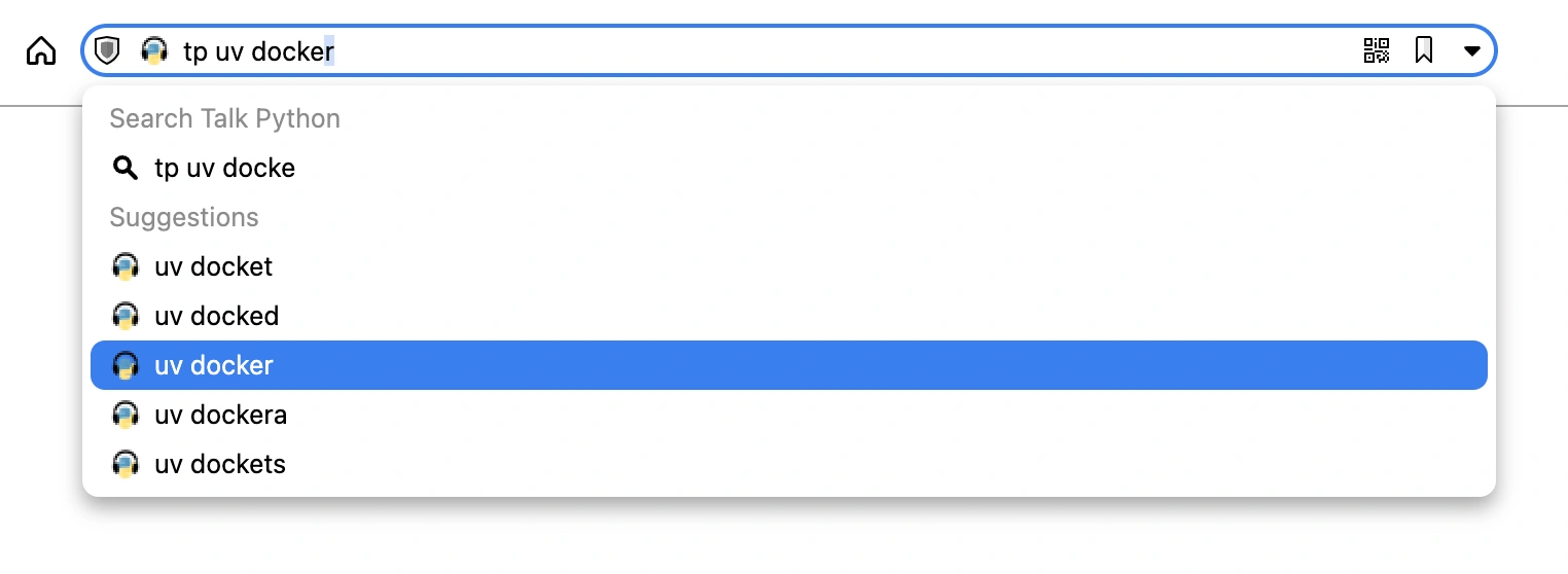 TL;DR: Add Talk Python and Python Bytes as custom search engines in your browser. Use shortcuts like “tp” to search 9 years of episodes and transcripts directly from your address bar. Setup instructions at search.talkpython.fm/api/browser.