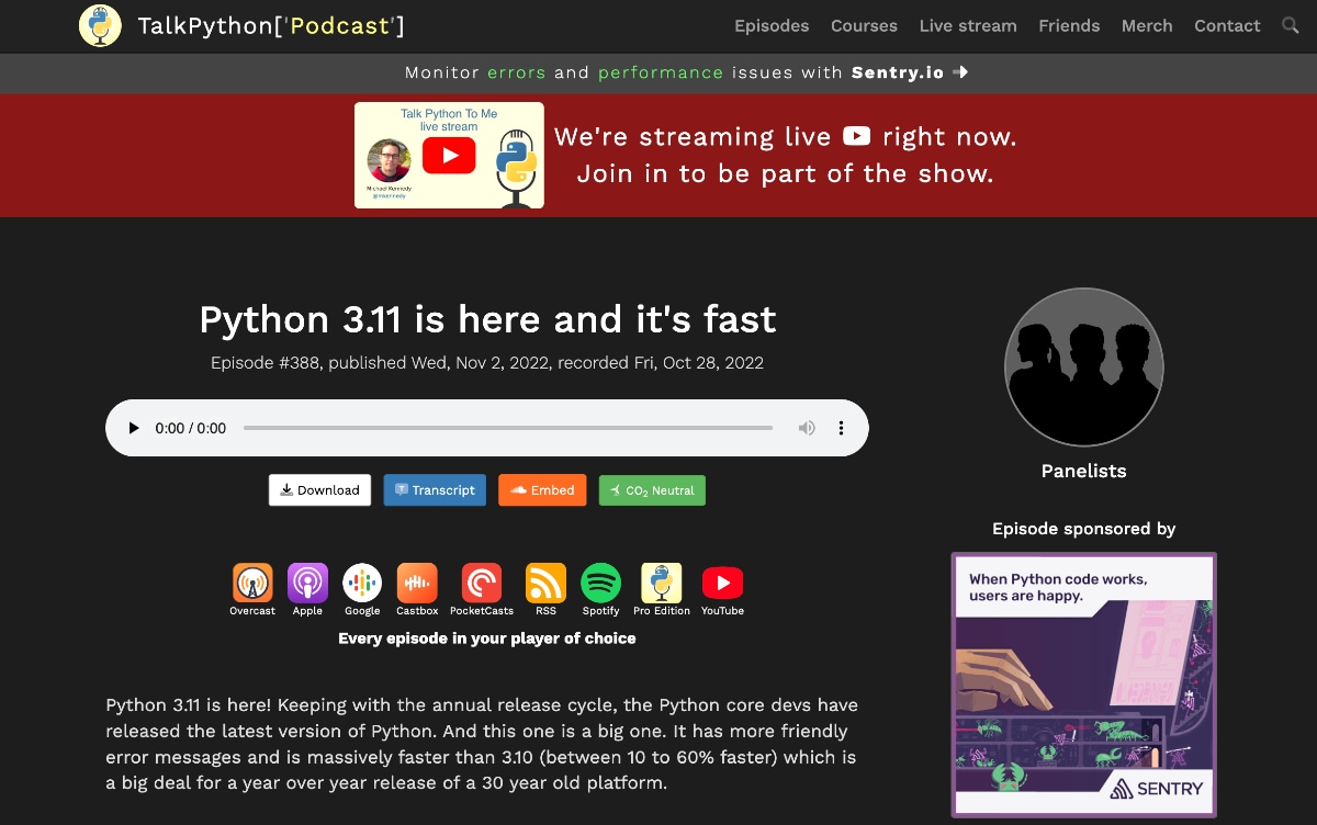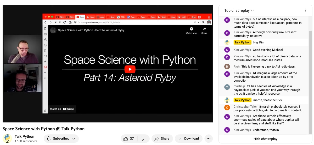 We stream all our podcast events with a live audience on YouTube. That’s lots of fun and a cool experience for our listeners: